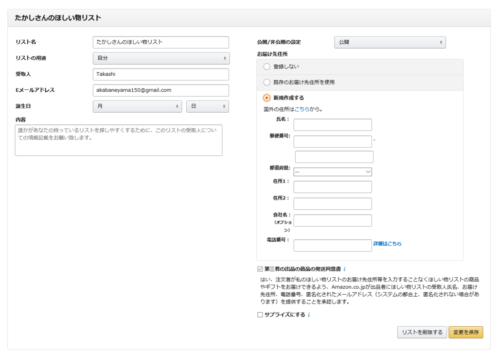 まだの方はぜひ、Amazonのほしい物リストを作ってみましょう。
